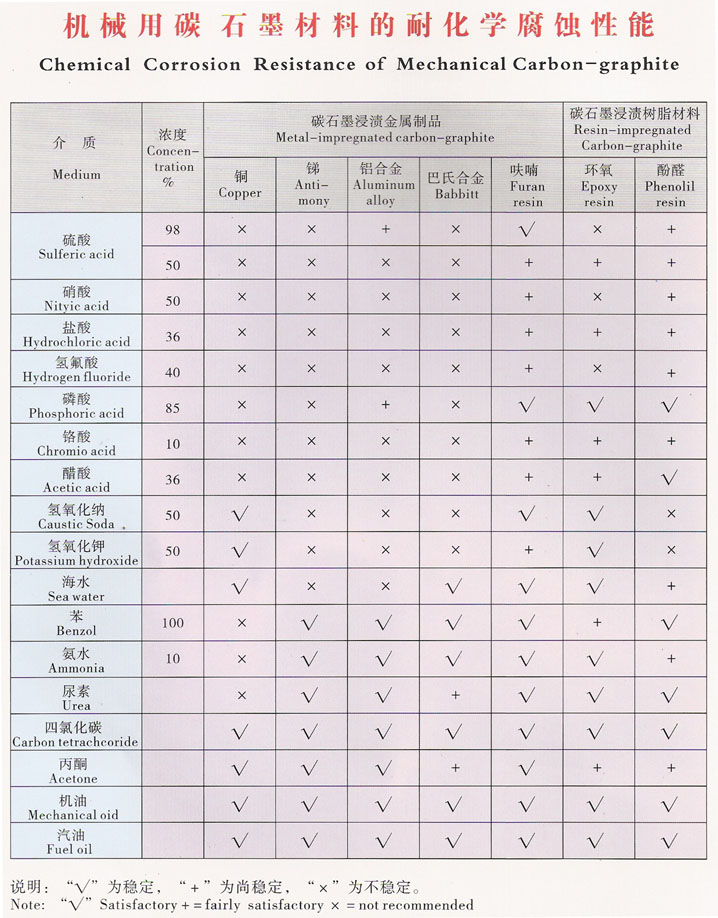 機(jī)械用碳浸漬石墨材料的化學(xué)特性